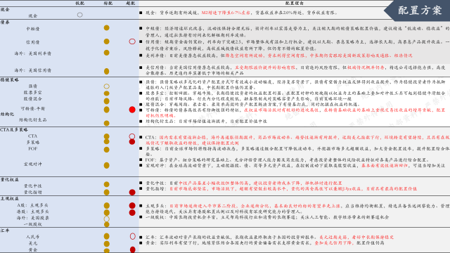 在全球经济具有高度不确定性的复杂环境下,建议维持哑铃型配置,在稳健资产中,关注国内估值合理、供需优化的转债、海外高息背景下的香港点心债、美元低风险资产的机会;市场底部坚实且具有波动,进取端配置关注量化多头及CTA策略。