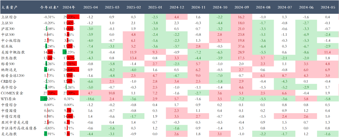 国内经济数据在外部冲击下有所放缓,但整体仍呈现出明显韧性。在三部委一揽子稳市场政策下,市场底部坚实,信心有所提振。海外受美元信用降低、美债需求不足影响,美元资产波动仍然较高,美联储因前景不明推迟降息周期,但中长期看,全球流动性宽松仍在进行。
